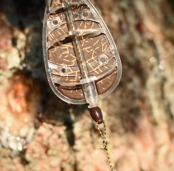 Po otwarciu wieczko ustawia się dokładnie pod kątem 180 stopni, co sprawia, że wiązanie przyponów z pudełkiem na kolanach jest proste, gdyż możesz użyć wnętrza wieczka jako przestrzeni roboczej. Wieczko ma również miarkę zarówno wewnątrz jak i na zewnątrz, która pomaga w wiązaniu przyponów.