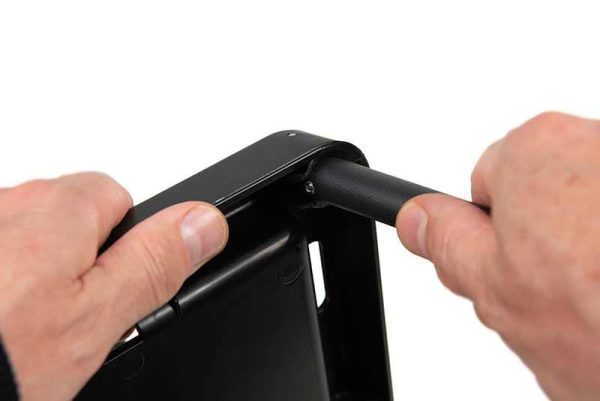 - Wyprofilowana, lekka konstrukcja, który pozwala złożyć nogi w blacie