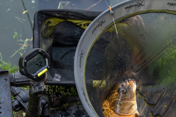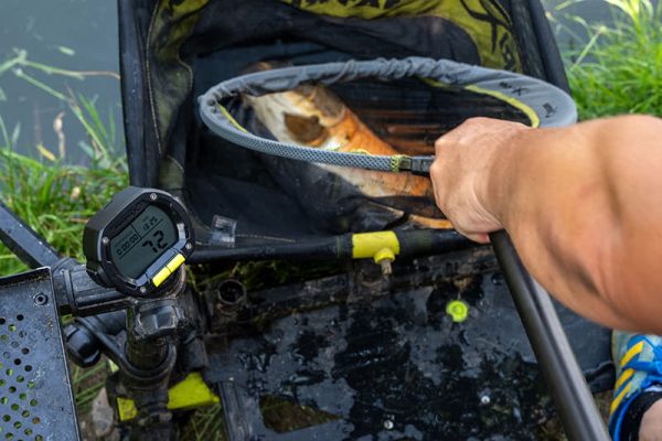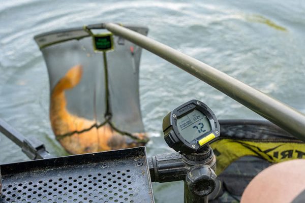 - Wyświetlacz pokazuje czas, stoper oraz wagę lub liczbę ryb