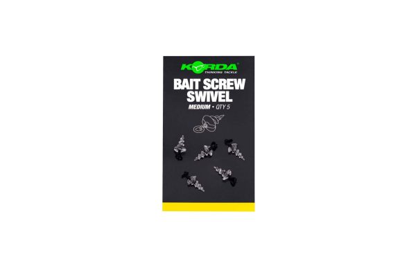 Bait Screw Swivel firmy Korda pozwala szybko zmienić przynętę na haczyku podczas używania przyponów, które normalnie wymagałyby pierścienia lub mikrokrętlika z kółkiem.