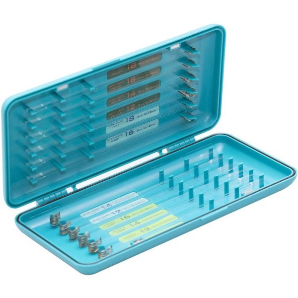 Pudełko na przypony Hook Box to kompaktowe rozwiązanie do przechowywania przyponów o długości 10, 12.5 i 15cm. Pudełko posiada magnetyczne zapięcie i jest szczelne co zapobiega wnikaniu wody do środka. Każde pudełko wyposażone jest w puste naklejki jeśli wędkarz chciałby powiązać swoje własne przypony. Przypony tyczkowe Drennan Pole Hooks to Nylon łatwo przenieść z drabinki do pudełka, są też zaopatrzone w kolorowe naklejki dla łatwej identyfikacji.